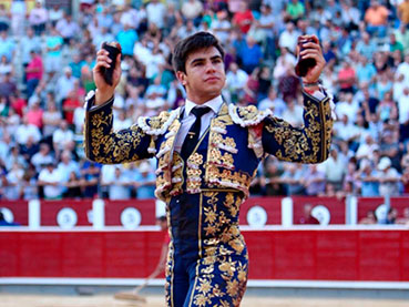 El venezolano aprovechó una de sus últimas novilladas antes de la alternativa para dejar ver que está muy puesto y maduro. Meció con gusto el capote para recibir a su primero y tiró de repertorio en quites. Dio fiesta en banderillas, evidenciando sitio y facultades y plantó sus reales y las zapatillas al suelo, toreando con mucho temple y muy despacio a un novillo de son extraordinario y de gran fijeza al que bajó mucho la mano.