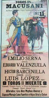 En honor a la INMACULADA CONCEPCIÓN, dos corridas de toros van programadas en esta plaza de mas de 15.000 localidades, en la capital ALPAQUERA DEL PERU ( la mejor lena de alpaca viene de esta zona andina).