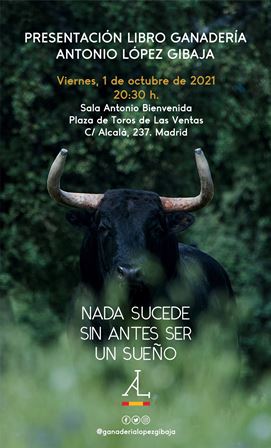 Mañana viernes, día 1 de octubre, a las 8:30 de la tarde en la sala Antonio Bienvenida de la plaza de toros de Las Ventas tendrá lugar la presentación del libro Nada sucede sin ser antes un sueño. Junto al ganadero intervendrán Victoria Collantes y Belén Casasús.