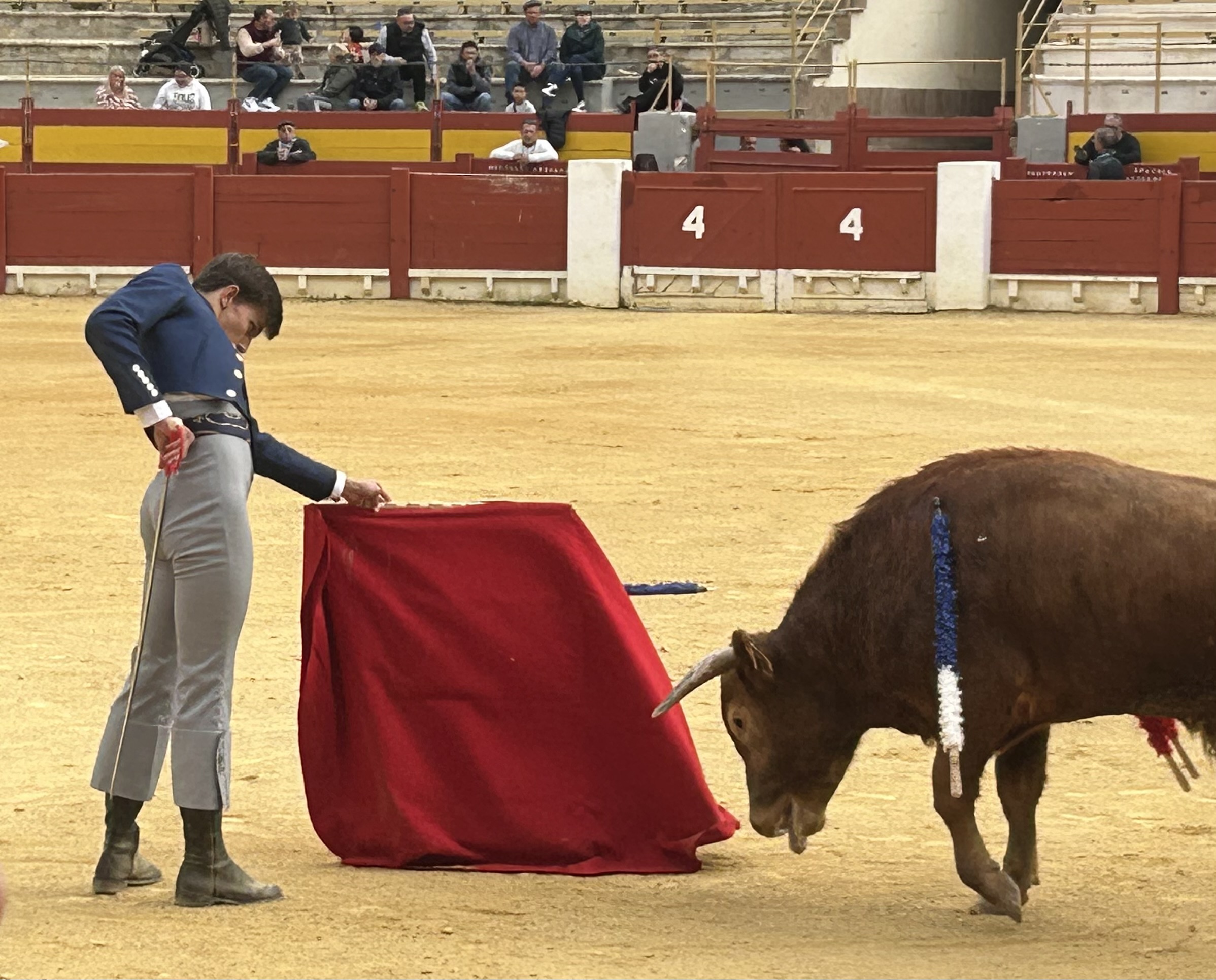 Iker Ruiz, de la escuela de Alicante, saludó con faroles de rodillas a su oponente, al que lanceó con variedad. Luego realizó un trasteo expresivo, bien concebido y ligado.