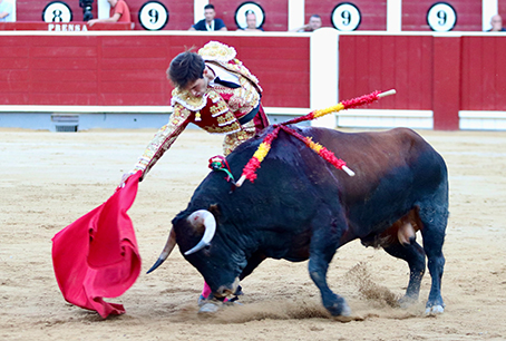 Llegó a esta cita convaleciente de su reciente cornada en El Casar pero no por ello renunció a recibir a su primero con una larga de rodillas en lo que fue toda una declaración de intenciones. Veroniqueó luego con gusto y cadencia y se hizo ovacionar al quitar. Impávido, sin cantearse, relajado, pasándoselo muy cerca, sin conceder un enganchón ni una duda, con series largas y limpias, exprimió por completo a un novillo dócil y noblón que, a última hora, amagó con rajarse. Una estocada hábil y eficaz le abrió ya la puerta grande y ratificó su aptitud para subir de grado.