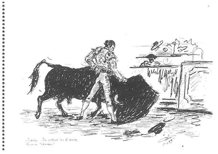 Manuel Palomar Llobet (1926- 2012), padre de nuestro compañero José Rafael Palomar, fue gran aficionado a los toros, al igual que sus hermanos: Patricio y Carlos. Y dentro de esa afición, disfrutaba dibujando ilustraciones de temas taurinos, que vamos a ir publicando. En concreto, las enmarcadas en el cuaderno “Las suertes del toreo”.
