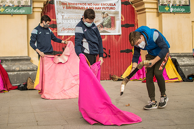 A día de hoy, los alumnos de la Escuela Taurina se encuentran sin recibir sus clases de toreo y sin poder salir al campo de tentadero. Ellos mismos, en un comunicado que publicaron en diferentes redes sociales, se refieren a que “estamos viviendo una situación muy complicada”. Piden no sólo que se resuelva lo antes posible la situación para que vuelvan los maestros y las clases teóricas y de toreo de salón, sino que también demandan que, en cuanto la situación sanitaria lo permita, se den las clases prácticas con reses que el Ayuntamiento está obligado a dar.