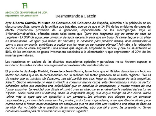 Desde la AGL analizan las desafortunadas declaraciones vertidas ayer por el Ministro de Consumo, Alberto Garzón. Como parte del entramado agrícola y ganadero de este país, uniéndose al rechazo colectivo manifestado por el resto de entidades homónimas.