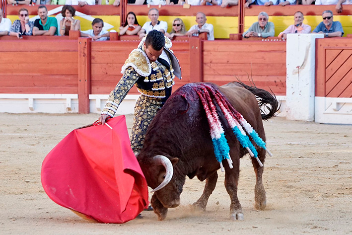 La gente lo esperaba con ganas en el sexto tras la faena del alicantino. Lo intentó, pero ya desde que el toro salió de chiqueros se le quedó parado con el capote. De hecho, con dos pares de banderillas puestas el sevillano pidió el cambio de tercio que no concedió el presidente. Entendió perfectamente Aguado a su flojo oponente y arrancó la faena con logrados ayudados por alto. Siempre a media altura pero con ligazón cuando le dejaba el de El Pilar.