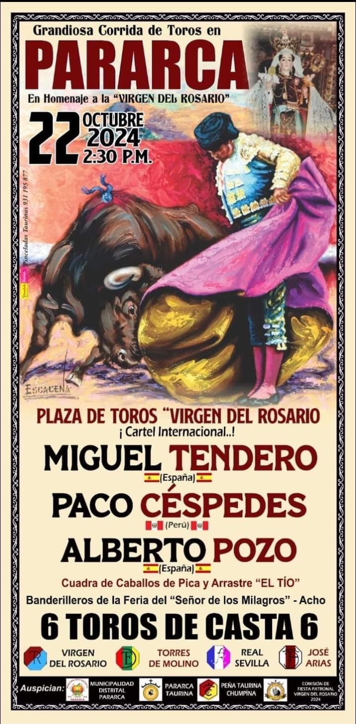 En éste festejo alternará con el español y paisano Alberto Pozo, quien tomó la alternativa el año pasado en San Lorenzo de la Parrilla ante un encierro de Miura y la figura nacional en Perú Paco Cespedes en la lidia de toros de diversas ganaderias nacionales. Será el próximo 22 Octubre.