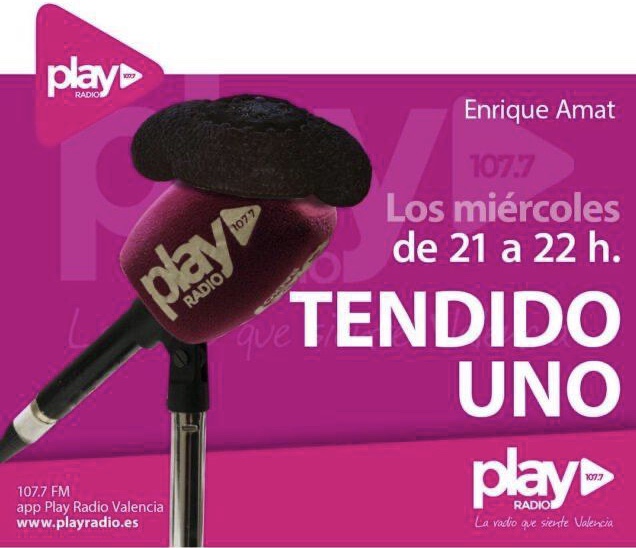 Hoy miércoles, día 29 de abril, a las 21:00 horas, en Play Radio 107.7 FM, http://www.playradio.es, se emitirá el programa de información taurina TENDIDO UNO bajo la dirección de Enrique Amat, con la colaboración del taurófilo Antonio Fuentes y con Abel Martí a los mandos de la técnica. Su contenido que cuenta con las siguientes secciones: