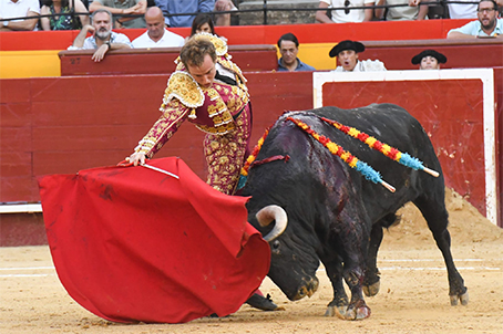 Recibió con dos largas de rodillas al escurrido quinto, que peleó con fuerza en varas y, de rodillas en el platillo de la plaza, comenzó una faena que tuvo muchos atibajos aunque siempre muy buena intención y disposición. La poca fuerza del animal condicionó la continuidad y ligazón, sacando el valenciano todo lo que tuvo su oponente a base de empeño y exposición. Un estoconazo fulminante le puso una oreja en sus manos.
