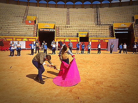 La empresa Lances de Futuro, concesionaria de la plaza de toros de Algeciras, ha colaborado con la actividad organizada por la Escuela Municipal de Tauromaquia de Algeciras, en la que unos cien alumnos de 5º y 6º de Primaria del Colegio Huerta de la Cruz han disfrutado de un taller de toreo de salón y de una visita guiada al coso algecireño.