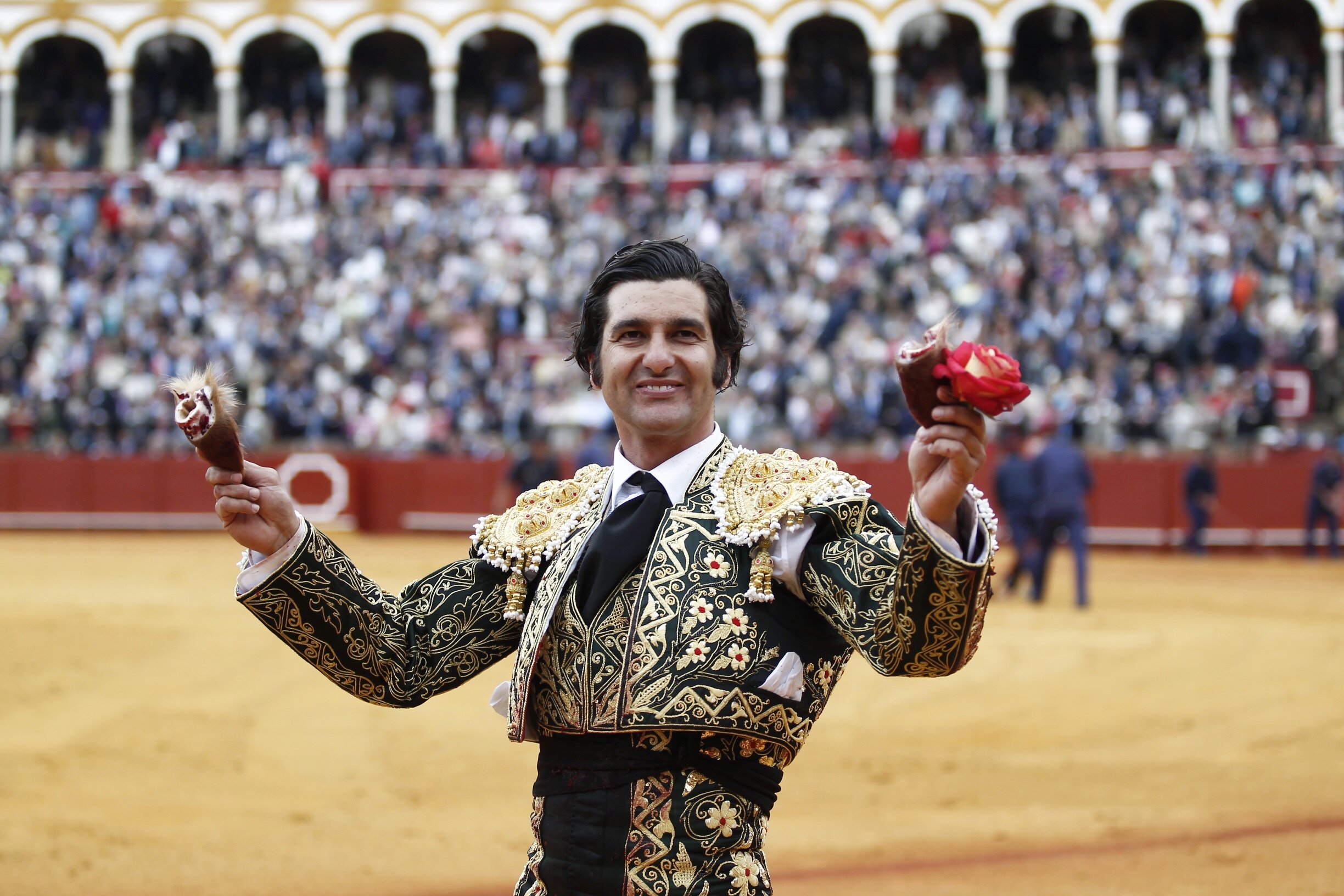 El torero sevillano se lleva el trofeo que concede el Real Club de Andalucía 'El Aero' por la faena que hizo al toro de Núñez del Cuvillo en la pasada Feria de Abril por la que cortó dos orejas.