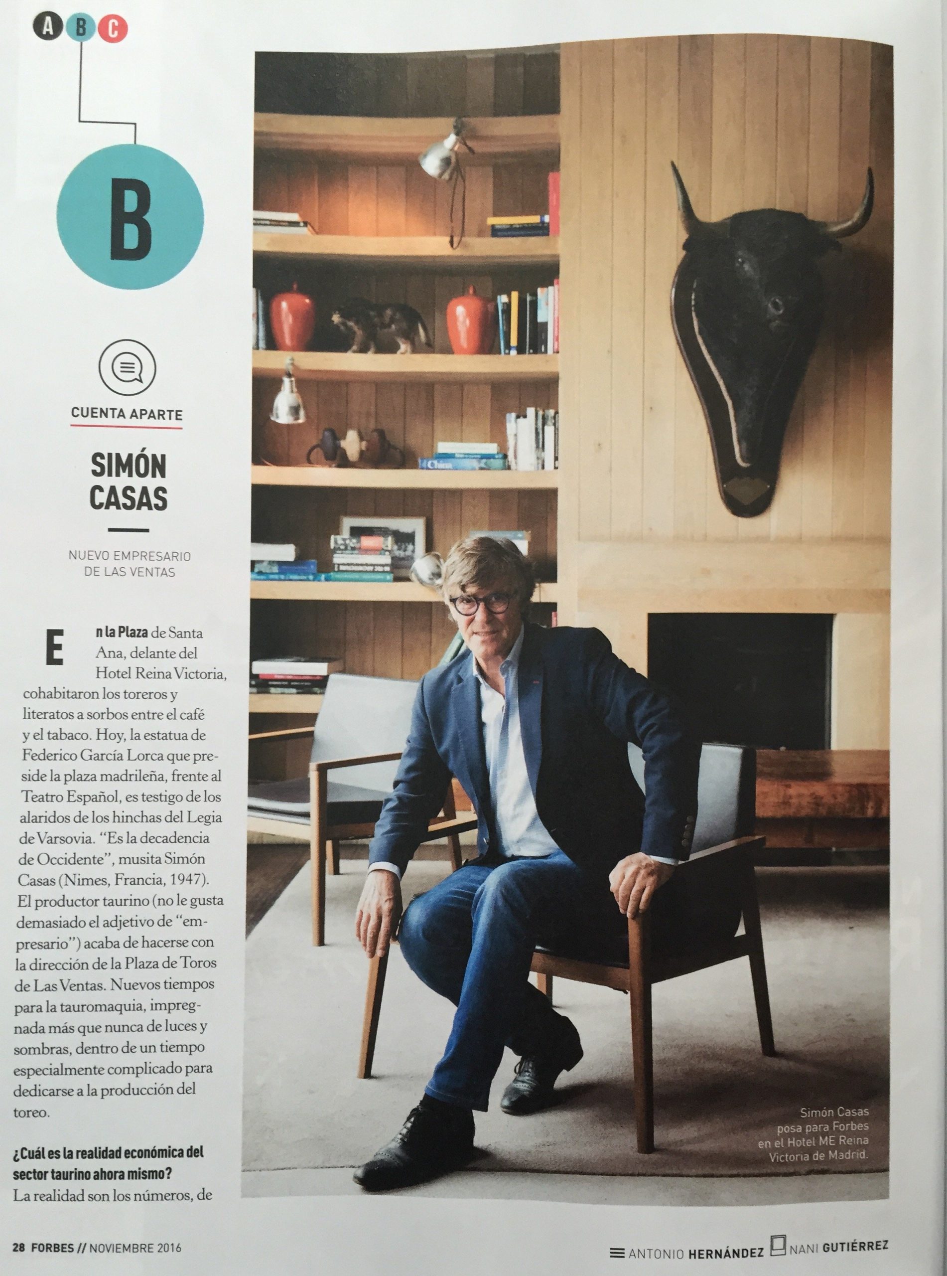 El mundo del toro, a través de la llegada del productor Simón Casas a la gestión de la plaza de toros de Las Ventas, ha suscitado una gran interés en la revista Internacional Forbes, siendo ésta uno de las ediciones referente dentro del mundo de los negocios.