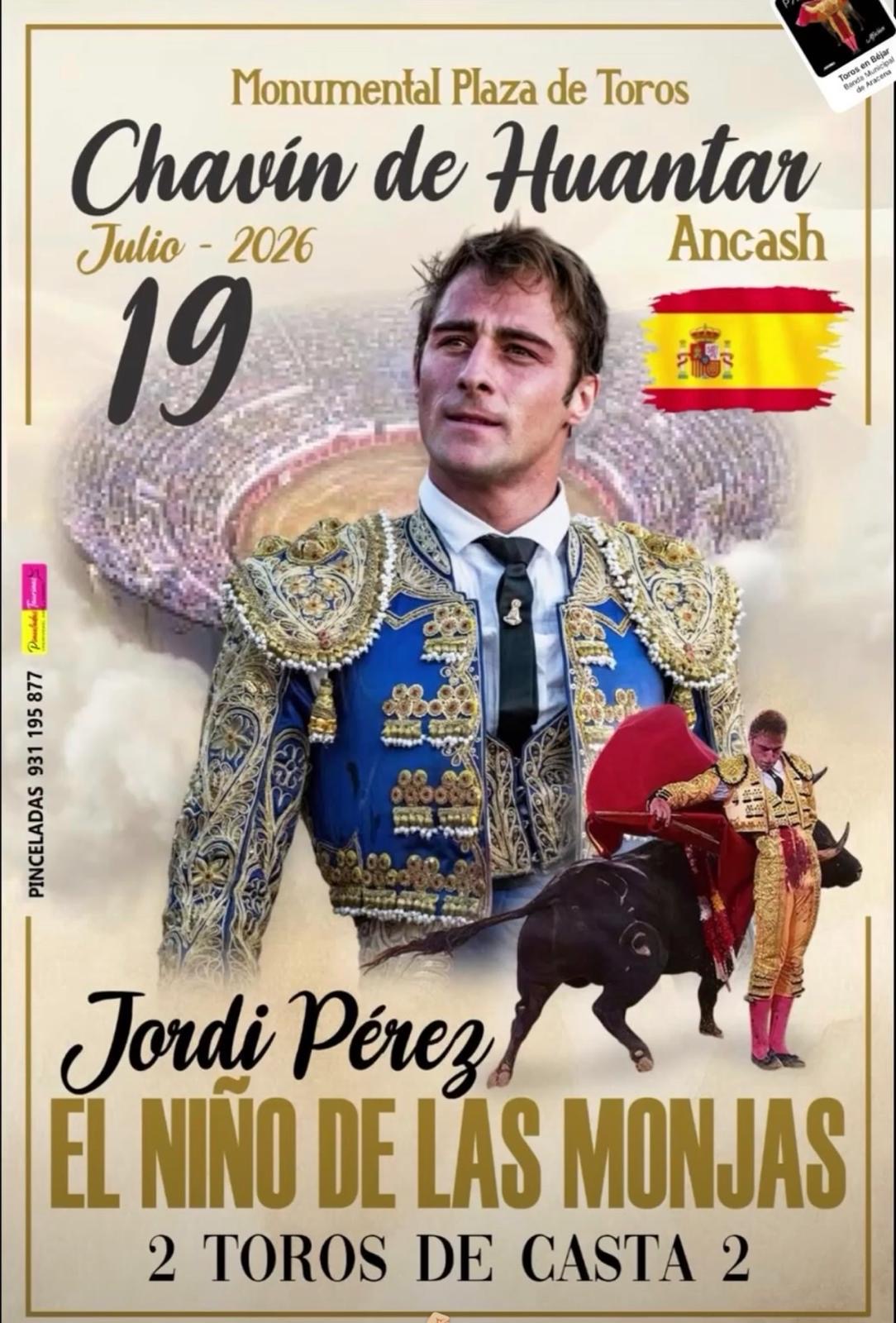 Jordi Pérez "El Niño de las Monjas" comenzará su temporada en ruedos del Perú, bajo el apoderamiento del banderillero Jhon Camarena. Su primer contrato será el 19 de julio en Chavin de Huantar, donde actuará en solitario. Este fin de semana iba a actuar en la plaza manchega de Carrión de Calatrava, en un festival, sin picadores, que al final fue suspendido. Se iban a lidiar novillos de Antonio Martin Campos de Jaén y junto a Jordi, hacían el paseillo Aníbal Ruiz, Antonio Linares, Carlos Aranda, Antolín Jiménez, Andrés Reinosa y Juan Robles. "El Niño de las Monjas" tomó la alternativa el 14 de septiembre de 2024 en Utiel con Alejandro Talavante como padrino y Emilio de Justo como testigo, cortando una oreja en su primer toro.