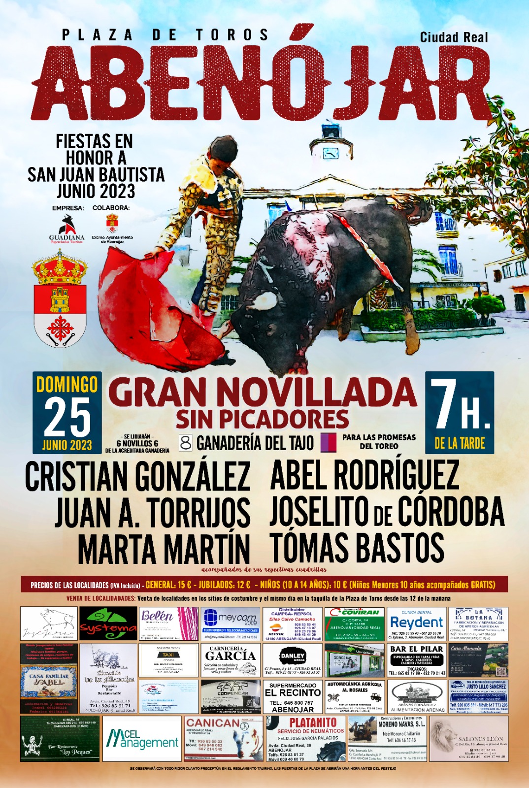 Una novillada sin picadores en la que se van a lidiar reses de la ganadería del Tajo y completan el sexteto de actuantes Cristian González, MartaMartín Abel Rodríguez, Joselito de Cordoba y Tomas Bastos.