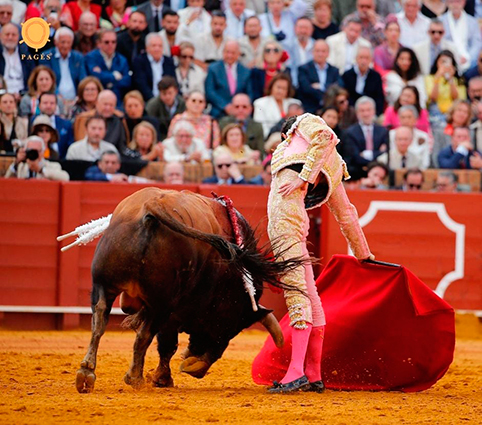 Pablo Aguado toreó templado de capa al tercero, sobresaliendo lances y media por el derecho. Dosificaron el castigo en varas. Brindó al pintor Miquel Barceló y comenzó con una serie excelente con la derecha. Siguió otra que fue caricia a un toro que respondía muy bien. Al natural también se gustó y siguió una serie con compás y naturalidad con la derecha. Se fue a por la espada y toreó de forma primorosa a dos manos como broche de oro a la faena. Pinchó y en el segundo intento dejó media espada saliendo tropezado. Hubo petición pero el trofeo no fue concedido y Aguado dio la vuelta al ruedo.