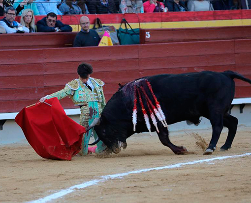 El quinto se rompió un cuerno por la cepa en el segundo tercio y fue sustituido por un sobrero escurrido y acometedor con el que volvió a estar con ganas en un quehacer largo e intermitente que fue asentándose conforme crecía su propia confianza, perdiendo la puerta grande al fallar con el estoque.