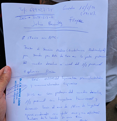 El matador de toros Julio Benítez “El Cordobés” sufrió una cornada el pasado domingo en el festival celebrado en la localidad palentina de Guardo. El torero, que había cortado las dos orejas al primero de sus antagonistas, se disponía a instrumentar la primera de las tandas al segundo de sus oponentes, como los restantes de la ganadería de El Collado de Fernando Arjona, cuando fue volteado por el animal, que le introdujo el pitón en la parte posterior del muslo derecho, sufriendo una cornada en la parte posterior del muslo derecho, con trayectoria transversal y dirección hacia el ano, de 15 cms. de longitud, y 6 de ancho, sin afectar ano ni sus esfínteres.