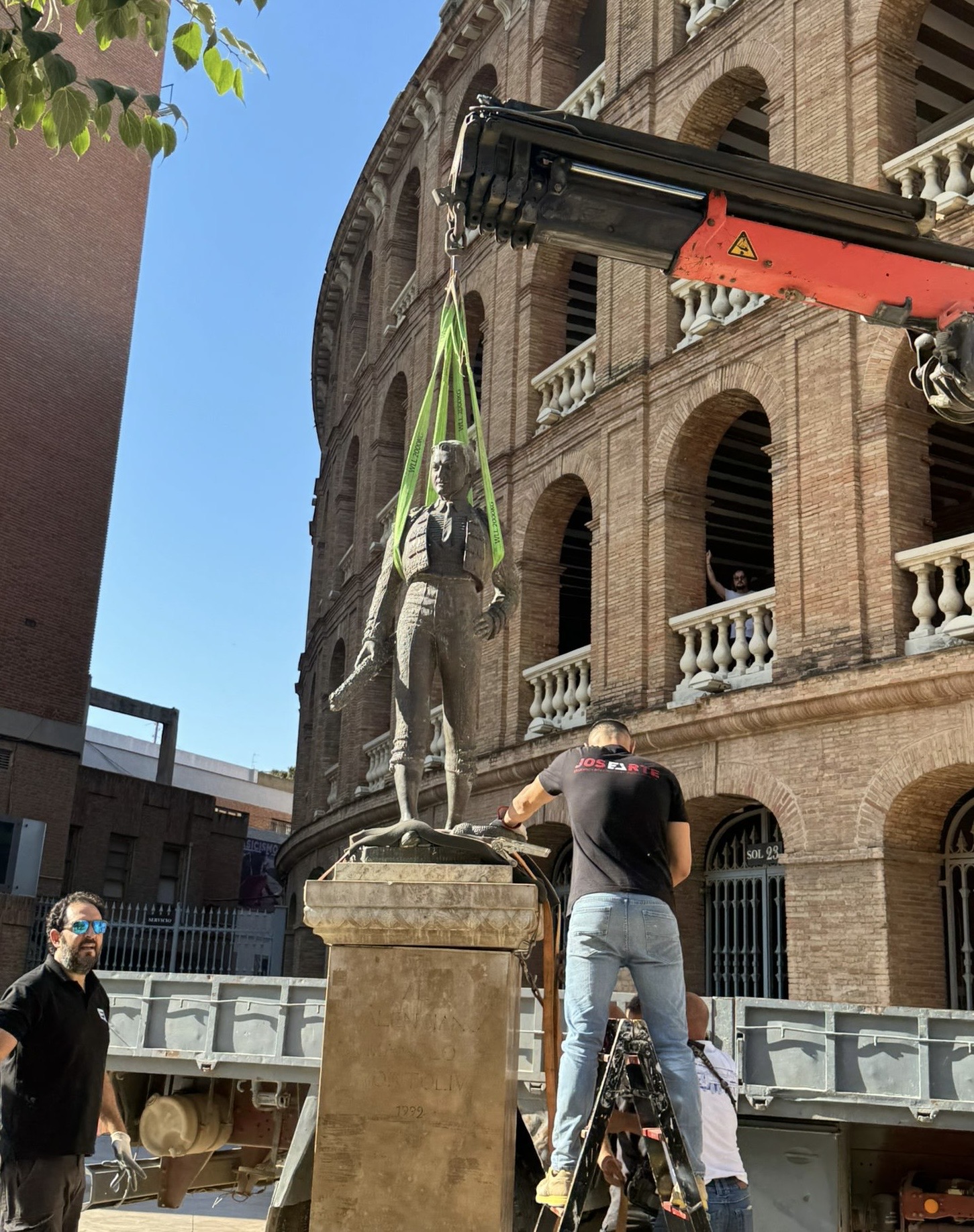 El monumento de nuestro querido Manolo Montoliu, ha sido retirado de su ubicación durante las obras, de la plaza de toros y el cambio de pavimento que se va a realizar en la explanada de la plaza.