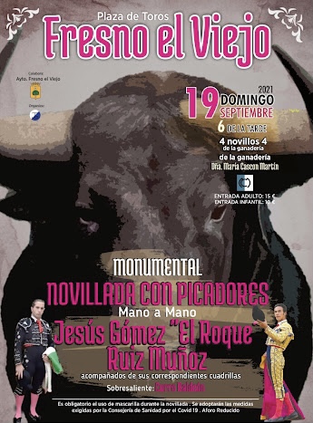 El novillero sevillano Ruiz Muñoz, quien actuará próximo domingo en Bocairent y tomará la alternativa en Requena el día 9 de octubre de manos de Manzanares con Roca Rey de testigo, triunfó ayer en la localidad vallisoletana de Fresno El Viejo.