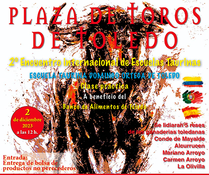 La plaza de toros de Toledo será escenario del segundo encuentro internacional de escuelas taurinas. Un festejo organizado por la Escuela Taurina “Domingo Ortega” de Toledo que se celebrará el sábado 2 de diciembre.
