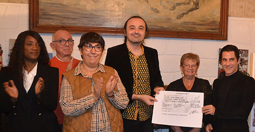 El cheque se entregó en El Mazet du Vaccares, en la finca de Mejanes, en presencia, entre otros, de los ganaderos y toreros Mme. Dominique Cuillé, Pascal Mailhan (Pages-Mailhan), Louis Tardieu, Virgile Alexandre y su hijo Hugo (El Campo), Guillaume Chabre (Blohorn) y Patrick Alarcon su mayoral, Jean-Luc Courriol el mayoral de los hermanos Jalabert, Stéphane Fernandez-Meca, Patrick Varin, Thomas Ubeda, Christian Lesur … Marc Serrano y el presidente de la asociación volvieron a dar las gracias a todos los que se habían prestado a la causa, a los toreros, a los ganaderos y a todos los implicados, entre ellos el creador Stanislas Blohorn, Michèle Ricard y Eugene Guillot por el lugar y la plaza de toros…