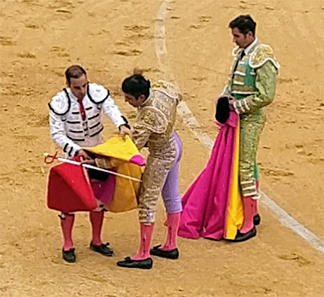 Cárdeno y chico el tercero. Cuello largo y abrochado de pitones. Mucha movilidad en este ejemplar, que humilló mucho por el lado derecho. Toro interesante. Serafín muy compuesto y bien en redondo sobre el pitón bueno. Se revuelve el toro por el izquierdo, por donde el catalán ya no traga tanto. Faena ceremoniosa. Pinchazo y estocada baja. Oreja.