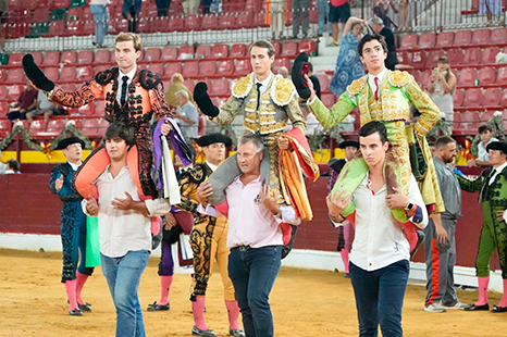 Perdió las orejas en el sexto, por culpa del verduguillo que le jugó una mala pasada. Estuvo muy por encima de un novillo medio, gracias a una técnica prodigiosa. No paseó más trofeos por los descabellos, pero sí dejó la impronta de estar ante un torero de ferias.