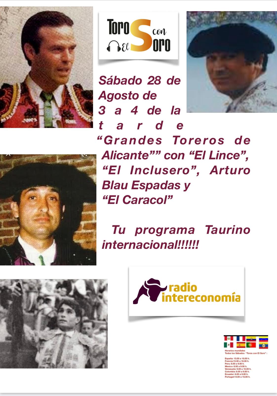 Se trata de un especial “Toreros para la historia”, en este caso de Alicante. En el mismo intervendrán El inclusero, El Llince, Blau Espadas y El Caracol.