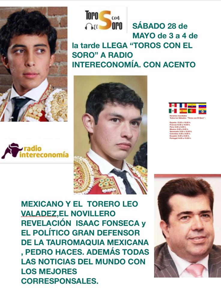 El programa “Toros con el Soro”, de Radio Intereconomía, que se emite hoy 29 de mayo de 2022 de 15.00 a 16.00 horas, tiene un amplio y variado contenido mexicano.