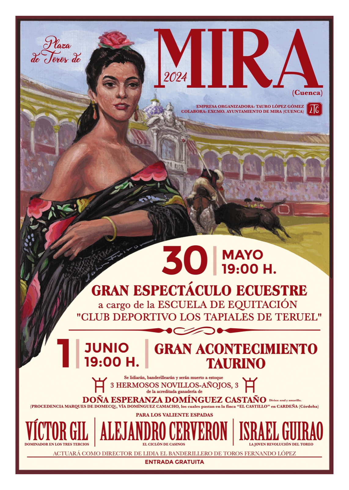 La plaza de toros conquense de Mira va a ser escenario el próximo día 1 de junio de un festival sin picadores organizada por Fernando López y Angel Gómez Molina.
