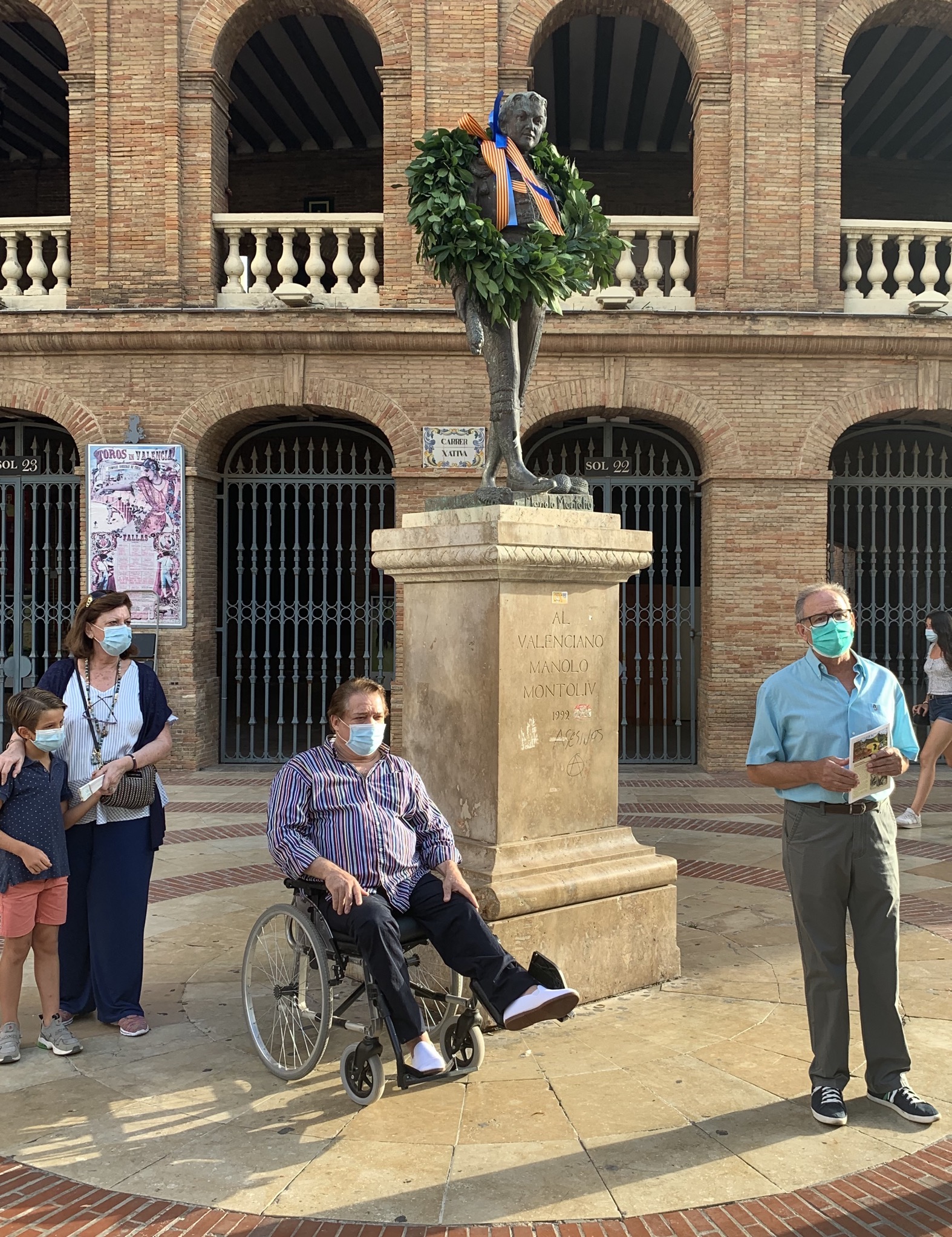 Y en este mismo acto, también se homenajeó a Manolo Montoliu, colocando una corona de flores en su estatua sita frente a las taquillas de la plaza de toros, ya que el pasado 1 de mayo no se pudo celebrar el recuerdo en su memoria debido a la crisis del Coronavirus.