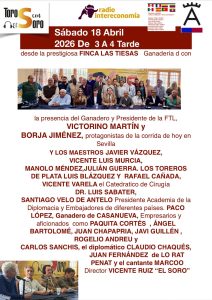 El programa “Toros con el Soro” de Radio Intereconomía se emite hoy sábado 18 de abril de 2026 de 3 a 4 de la tarde,